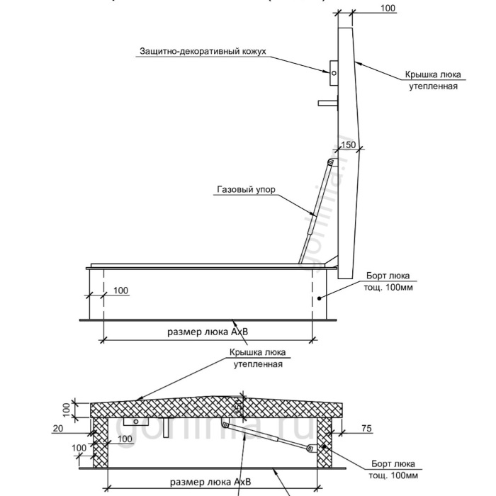 Элементы фурнитуры нижнего открывания лаза на крышу