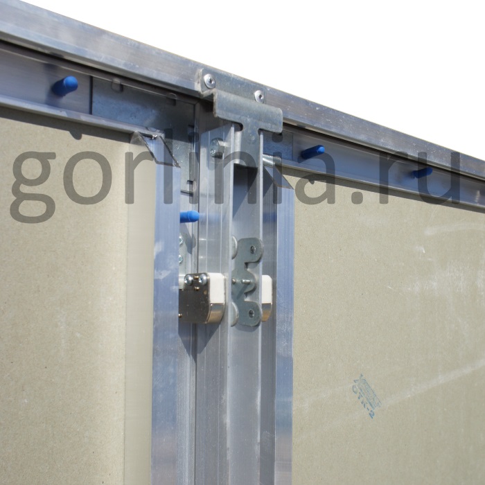 Нажимные дверцы несут несъемные скрытые петли с одной осью вращения. В конструкции предусмотрена съемная импостная перемычка для фиксации створок нажимными замками