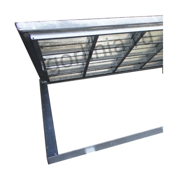 Рама сварена из сортового уголка 50х5. Каркас двери с внешним кантом выполнен с обвязкой из профиля 50х25 с ячейкой в осях 300х300. Дно крышки закрыто оцинкованным листом 2 мм клепочным соединением с расчетной глубиной 20 или 30 мм в зависимости от толщины декинга.