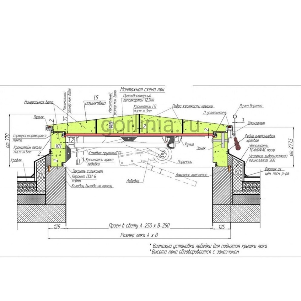 Рекомендуем заказать дополнительную лебедку для облегчения подъема дверцы с технического этажа после выпадения снега.