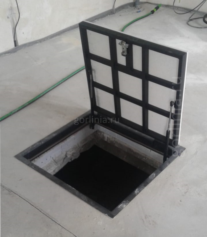 Заказная конструкция с подъемным механизмом по стороне 600 и удобным световым окном 550*800 для спуска по лестнице в погреб.