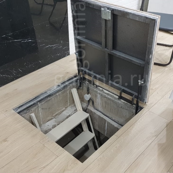 Рама без наличников выставляется в существующем отверстии 70*70 см с допусками, крепится в перекрытии через вертикальные пластины даже когда Ваш ремонт закончен и пол выложен керамогранитом или настелена ламинированная доска.