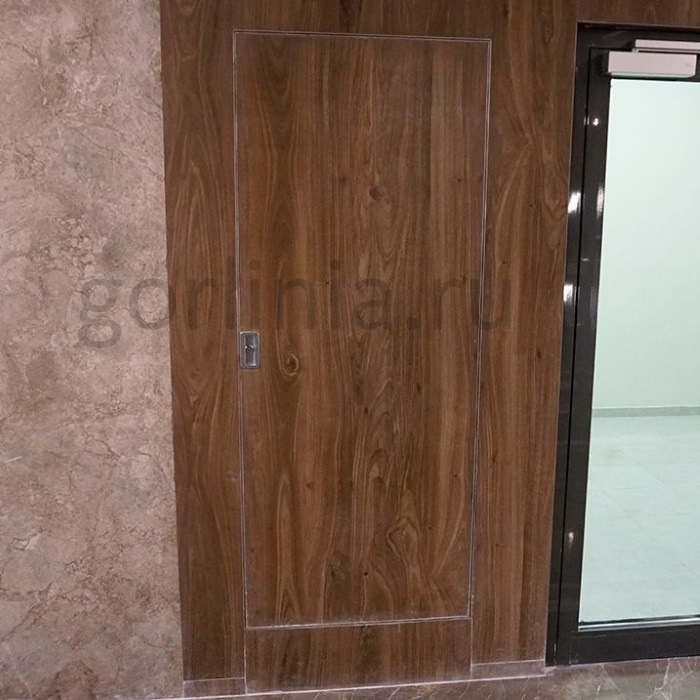 Створка открывается с лицевой стороны на себя за утопленную ручку или нажатием. Внутренняя часть полотна и коробки отделке не подлежит.